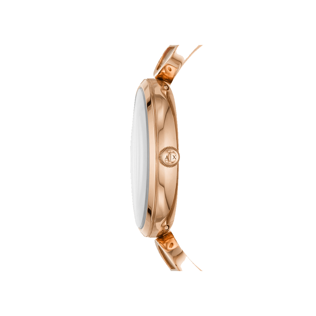 En el momento en que pongas tus ojos en este reloj analógico para mujer de House of Armani Exhange, querrás tenerlo. Estos relojes giratorios tienen el aspecto y la sensación de un reloj automático pero con la precisión de cronometraje del cuarzo. Con una gran esfera negra, tres manecillas de oro rosa y una correa de cuero gris, todo lo que puedes hacer es esperar y dejar que adorne tu muñeca y haga lo que mejor sabe hacer.
